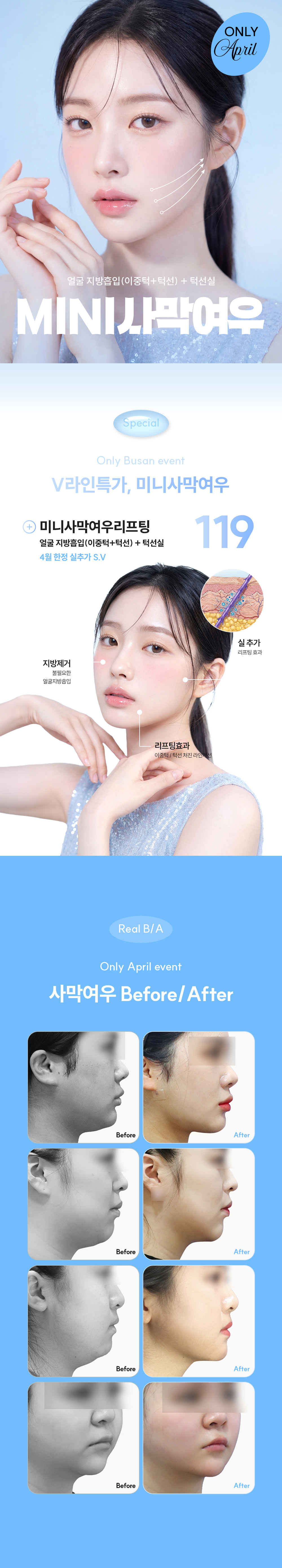 [미니사막여우] 얼굴 지방흡입(이중턱+턱선) + 턱선실 ★4월한정+실추가S.V